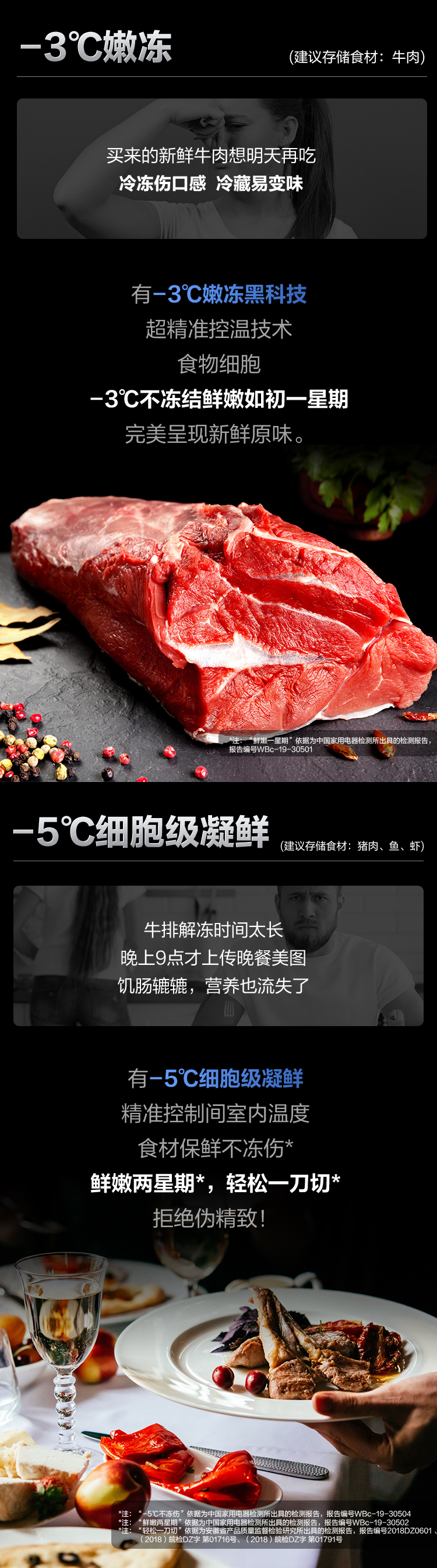 搭載-5℃嫩凍凝鮮科技,鮮嫩兩星期,輕松一刀切。Plasma等離子除菌凈味,除菌保鮮,長久新鮮。4檔保鮮模式,多重角色時刻新鮮。